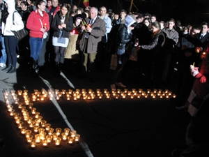 Aseară, 7 aprilie, în Piaţa Marii Adunări Naţionale au fost aprinse zeci de lumânări sub forma cifrei 7, în memoria victimelor de la 7 aprilie 2009, transmite Info-Prim Neo.