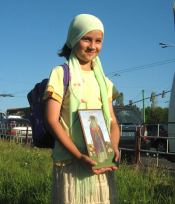An icon on her chest, rucksack on her back and necessarily her head covered, Marina (10 years) was waiting in the dawn on Friday, at Chisinau's Gates, for the start of the 24-hour pilgrimage. She came with her grandmother.