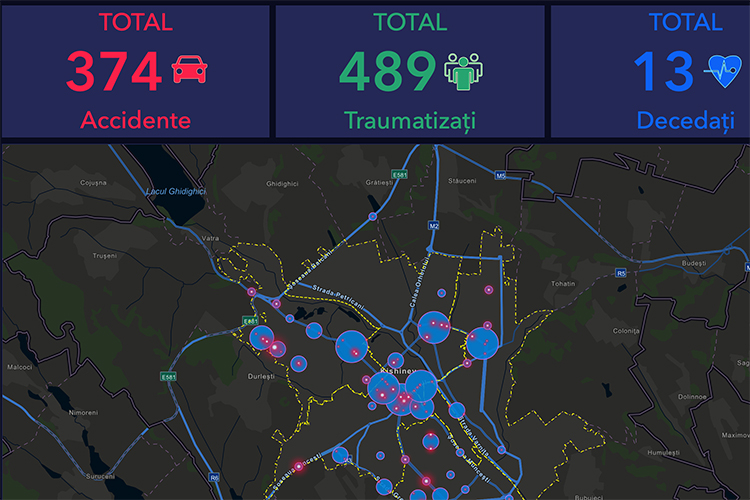 An interactive map with road sectors where the largest number of accidents occurred in the municipality of Chisinau last year was launched today. The map can be also accessed through the cellphone, IPN reports.
