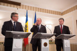 Potrivit preşedintelui PLDM, calea unică a Republicii Moldova este Uniunea Europeană. „Cred că dacă am organiza un referendum privind vectorul extern, majoritatea moldovenilor ar opta pentru integrarea în UE. Eu cred că rezultatele sondajului care arată că doar un număr de sub 50 la sută din moldoveni optează pentru UE reprezintă doar nişte cifre a unui sondaj. Am avut o întrevedere cu preşedintele ucrainean Poroşenko şi mi-a transmis un mesaj ca să avem grijă de ţară şi să nu admitem ceea ce se întâmplă în Ucraina. Prin semnarea Acordului de asociere cu UE, noi am semnat foaia de parcurs a Republicii Moldova. Această foaie de parcurs ne arată concret ce trebuie să facem. Şi vom avea grijă, vom supraveghea ca acest parcurs să continue”, a spus Filat.