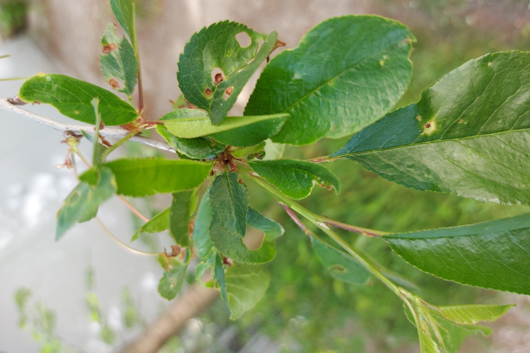 Stigmina carpophila это грибковый растительный патоген листьев на косточковых деревьях - еще одно заболевание которое часто встречается весной после теплой зимы. На листьях появляются светло-коричневые пятна диаметром 2-4 миллиметра, затем появляются некрозы, пятна опадают и листья выглядят как прострелянные. В данном случае специалисты рекомендуют обрезать сильно пораженные ветки и уничтожать их, а затем проводить обработку медным купоросом, согласно Государственному реестру.