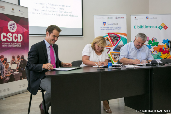 Национальная библиотека и Программа Новатека/АО IREX Молдова подписали сегодня, 17 августа, меморандум, который предусматривает продолжение процесса модернизации публичных библиотек. Будет разработан национальный механизм оценки библиотек для определения влияния предлагаемых обществу услуг, а так же для обеспечения территориальных публичных библиотек лицензированным программным обеспечением, передает IPN.
