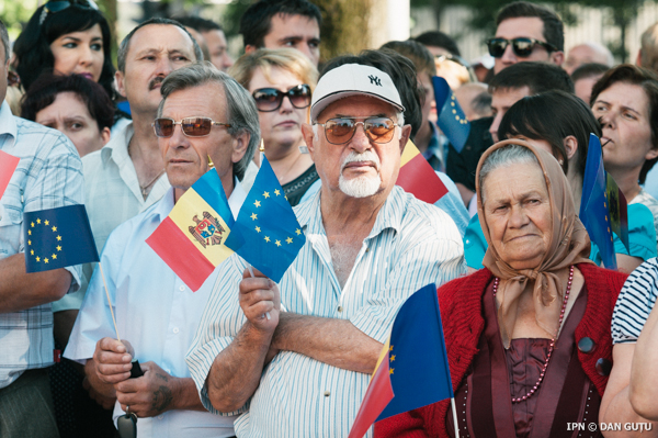 Граждане из всех районов страны прибыли в Кишинев, чтобы поддержать ратификацию Соглашения об ассоциации Республики Молдова с Европейским союзом. Люди несли в руках флаги Республики Молдовы и Европейского союза, передает IPN.