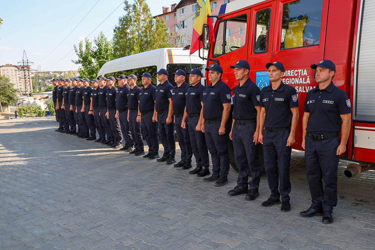 Церемония началась с минуты молчания в память о сержанте Денисе Тимохине, погибшем 14 августа во время тушения пожара растительности во Флорештском районе.
