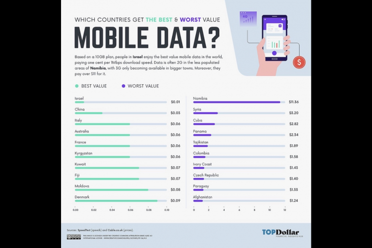 Как следует из выводов одного из центров финансового исследования, Top Dollar - Insights Financial Hub, Молдова входит в десятку стран мира с наилучшими по параметрам качества ценами на мобильный Интернет. Для определения этого учитывались стоимость и скорость мобильных данных, цена за 1 ГБ, а также доход на душу населения страны, - передает IPN со ссылкой на techguide.com.au.