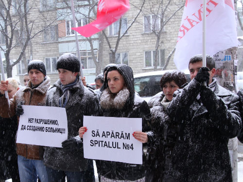 Молодые люди пикетировали Управление здравоохранения Муниципального совета Кишинэу вместе с бывшей директором медицинского учреждения Ниной Дони. "На протяжении 2011 года мы боролись за модернизацию больницы, доставили компьютеры, увеличили количество кроватей с 70 до 100, но власти не приняли это во внимание и ликвидировали 20 койко-мест", - подчеркнула Нина Дони.