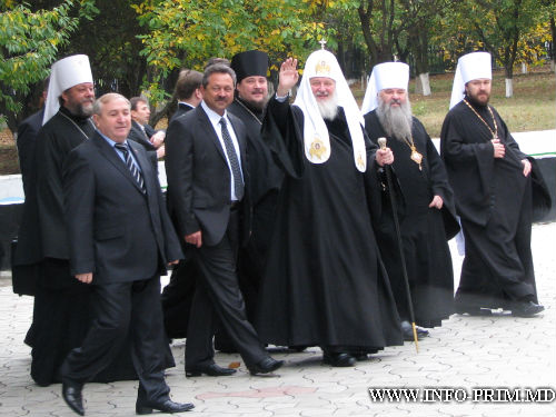 Директор медицинского учреждения Виктор Чернат вручил Патриарху Московскому и всея Руси Кириллу юбилейную медаль в честь 50-летия Онкологического института Кишинэу и небольшой ковер с изображением господаря Штефана чел Маре.
