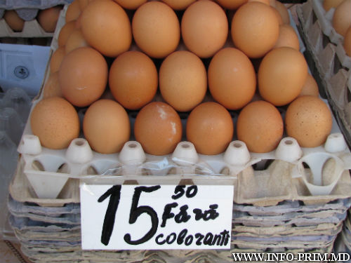 Цвет желтка не отражается на цене. Десяток яиц стоит на рынке от 14,5 до 16,5 лея.