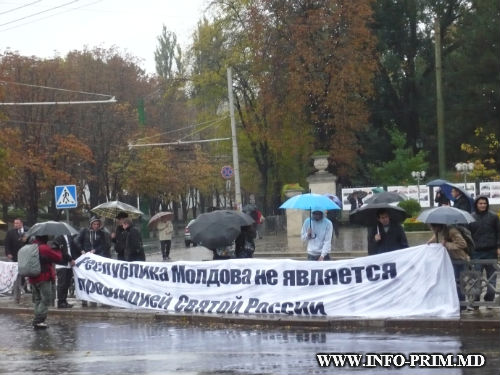 Среди лозунгов протестантов: "Перед Богом мы один румынский народ", "Республика Молдова – не провинция Святой Руси" и др.