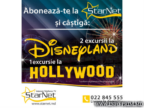 Согласно пресс-релизу, этой осенью подключение к StarNet может принести незабываемую экскурсию в Голливуд в студии Universal Studios и 2 экскурсии в парк развлечений Диснейленд в Париже! Это призы, которые будут разыгрываться в рамках рекламной кампании StarNet в период с 25 октября по 30 ноября между всеми, кто выбирает абонементы StarNet.