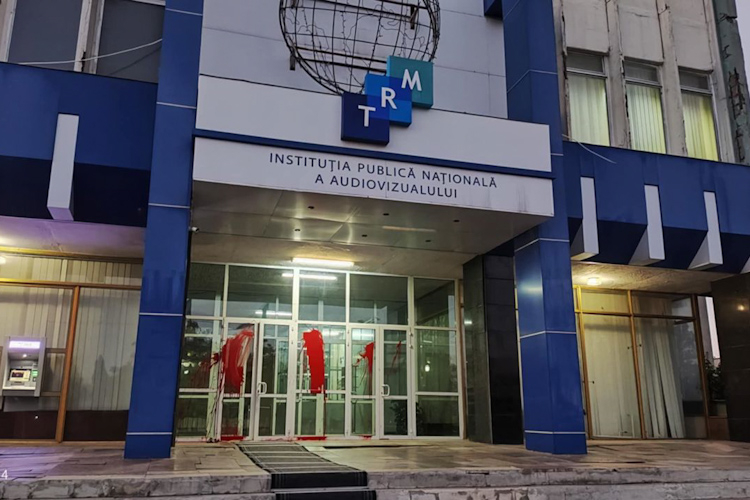 Здание общественной компании „Телерадио-Молдова” подверглось вандализму прошлой ночью. Двери у входа в учреждение были облиты красной краской.