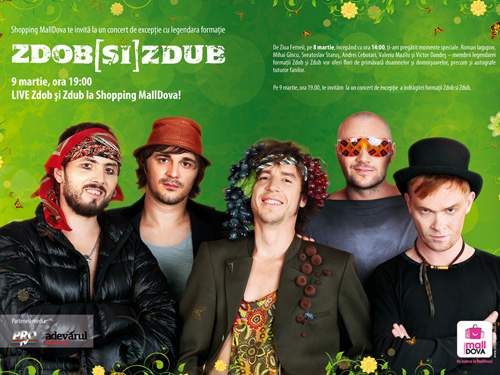 В среду, 9 марта, члены группы Zdob şi Zdub выступят в торговом центре Shopping MallDova с концертом LIVE. Победители национального этапа конкурса Eurovizion 2011 посветят свои песни всем посетителям, отмечает Info-Prim Neo со ссылкой на координатора по общественным связям компании. Концерт начнется в 19.00.